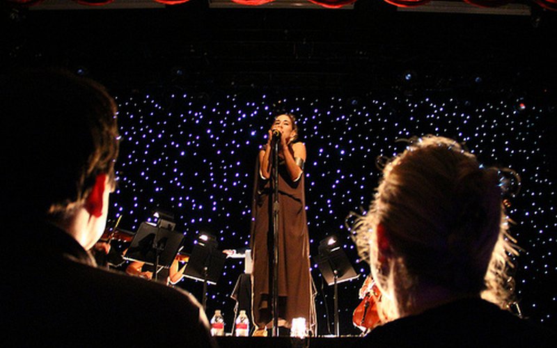 Gracing the Triple Door Saturday night during Decibel Festival was an incredible Sacred Bones double header from Zola Jesus and Pharmakon. With a dazzling night sky of stars in the background and a visually arresting display from each up front, Saturday's Optical session was one for the books, showcasing brilliant aural contrast as well as cerebral, creative parallels. Between the captivating cacophony of Pharmakon and an extra special Zola Jesus set backed by the Mivos Quartet, directed by JG Thirlwell, there couldn't have been a better beginning to our Saturday night.
