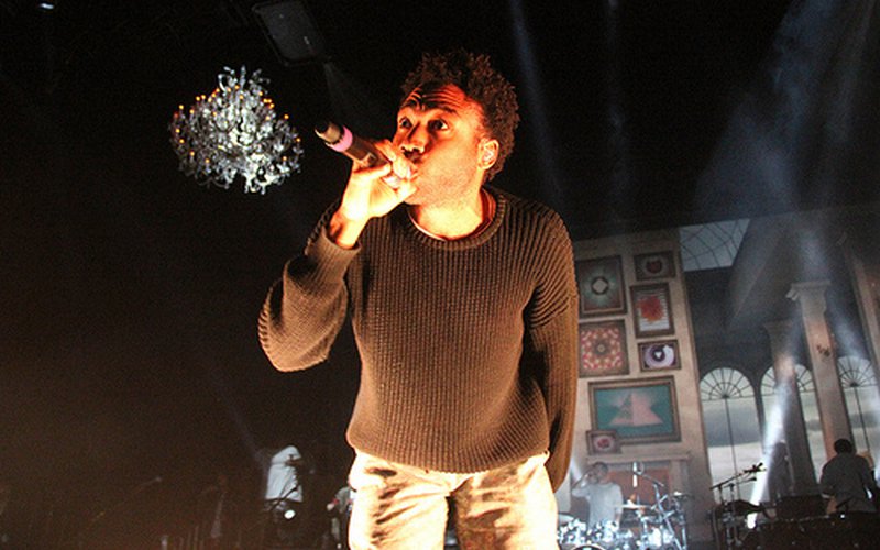 "Flight of the Navigator" begins and Gambino stands alone in the middle of the stage. The mansion in the background disassembles itself to a digital array again. The computer screen flashes "ERROR" and "RESET" and then goes to nothing, as a sparkle of blue light makes Glover a silhouette behind an opaque wall as he mumbles through the reserved tune. On the record, it's here where isolation takes hold of the narrator, and the psuedo-interaction of the Internet isn't enough to keep him warm at night. Here too, as the crowd listens quietly in awe of the beauty on stage, the digital noise seems to quiet a bit. Along with rapping, acting, writing, and all of that other stuff, Glover also has an excellent falsetto (I know, it's completely unfair) and showed it off in full form here. The massive energy of the first half of the main set waned slightly only to build up once more, as Glover navigated through the second half of the record, saving lead single "3005" as the penultimate number. Here, the extras slowly conglomerated at the side of the stage, peeking out from around the corner just to take pictures and video, just like the crowd below them. In the background, the mansion begins to rebuild itself slowly. But Glover's narrative has a definitive ending, and with "Earth: The Oldest Computer (The Last Night)", the mansion comes crumbling down and the computer screen continues showing "ERROR" until its death. The explosive track ends the main set in stellar fashion as the crowd goes wild.