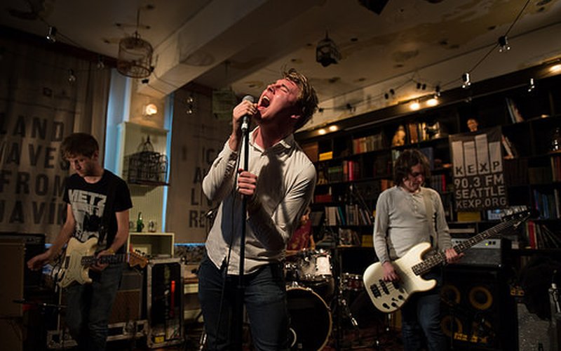 There's nothing pretty about Girl Band. In fact, the Dublin-based four-piece play some of the most abrasive pop songs you're likely to hear. But it hadn't always been that way. Singer Dara Kiely and guitarist Alan Duggan had played together in more conventionally "indie" type bands before hitting upon, quite literally, their aggressive sound. With bassist Daniel Fox and drummer Adam Faulkner, the all-male group heaps loads of distortion over a driving beats, sounding at times like chainsaws attacking a DJ rig, with Kiely's deadpanning Mark E. Smith-style voice barely audible above it all... until he screams. On an early Saturday afternoon at Kex Hostel in Reykjavik during Iceland Airwaves, a full house yelled back. Perhaps even louder than their own sound, Girl Band was one of the most buzzed about acts at the festival, and during this session for KEXP’s broadcast, they proved that without even an official release to their name, they could rise above the din.