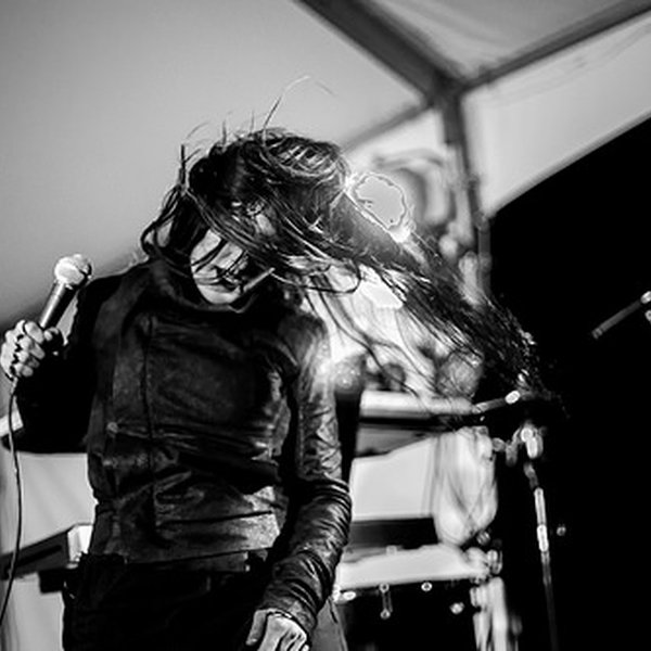 So then the members of the occult UK video and experimental art group Psychic TV entered the stage with an obscure soundbite playing that gradually got commandeered by a climax of psych-whimsical, wall-of-sound elation. Projected behind the musicians were cult signs that periodically morphed in and out of each other and an ambiguous mise en scénes. After a couple more soundbite interludes, the show took a (not surprising) interactive performance turn when the frontman and singer bantered for a bit then had the crowd turning to their right and left to smile at and hug someone they didn't know because he wanted to play to a happy and on-their-toes crowd.
