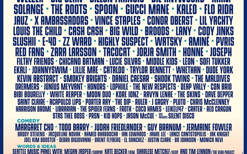 We're excited to unveil the lineup for the 2017 Bumbershoot Music & Arts Festival, held right here on the Seattle Center campus from Friday, September 1st through Sunday, September 3rd. This year's lineup is bolder than ever, with headlining sets from Flume, Lorde and ODESZA. Among a wide range of artists are many KEXP faves, including Solange, The Roots, Spoon, Weezer, Vince Staples, Conor Oberst, Middle Kids, Chicano Batman, Júníus Meyvant, and lots of great local acts like The Maldives, Tacocat, Cataldo, Smokey Brights, J GRGRY, Porter Ray and Acapulco Lips.