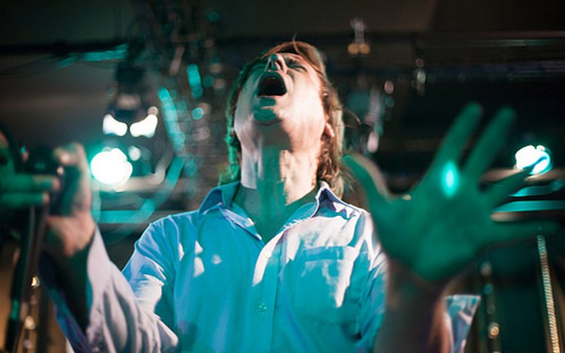 The Monty Hall set lasted for about 45 minutes -- significantly extending the show by about 15 minutes more than past Maus sets (awarding us about six more songs). The backing band appeared to be exactly what Maus needed -- support. Technically, the sound is an obvious improvement over his solo performances, specifically when the drums kick in, pulsing along with Maus. Otherwise, there is not much harmonious change. The band members’ presence is not discounted or unnoticed, however. The performance is still the familiar John Maus experience unfolding, but this time he has a few familiar faces to glance at between songs for some grounding. A few times throughout the night, Maus turned, yelling directly towards his keyboardist, Luke Darger, an interaction previously reserved for only Maus and the audience.