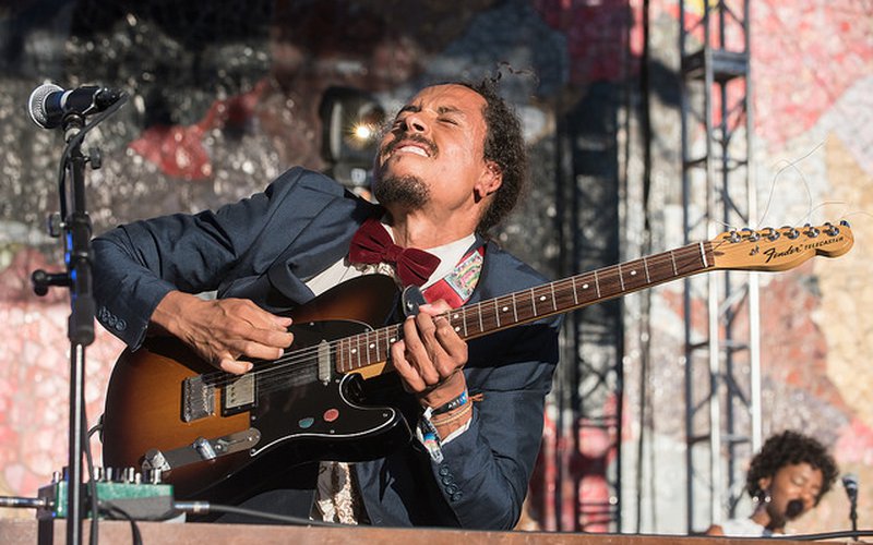 Bardo Martinez, Chicano Batman's exemplary, ever-enthusiastic frontman, switched nimbly between instruments, pulling off multiple changes sometimes within the space of one song. When he played his keyboard, he seemed to feel the music in his whole body, each vintage-sounding vibration of the keys eliciting a shudder from his shoulder down to his sneakers. Behind him on bass, Eduardo Arenas -- who released a solo project as this year as well -- rocked side to side while playing fast and funky bass lines, his face a look of in-the-groove ecstasy.