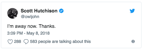 Late last night, Hutchison posted the following to his Twitter account: