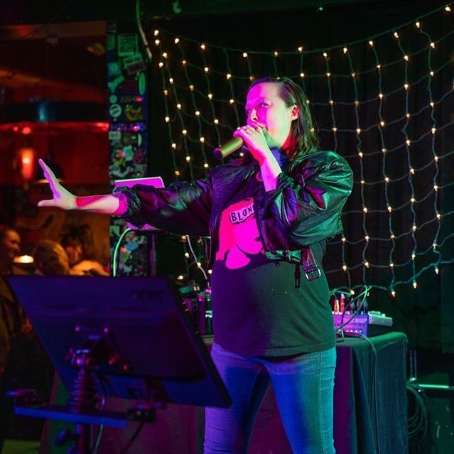 Vanessa Resler — aka Baby Van Beezly — is a DJ at Queer Bar on Capitol Hill, where she also hosts drag karaoke. Though, her bread-and-butter these days is DJing weddings and corporate events. She is currently pregnant with her second child.
