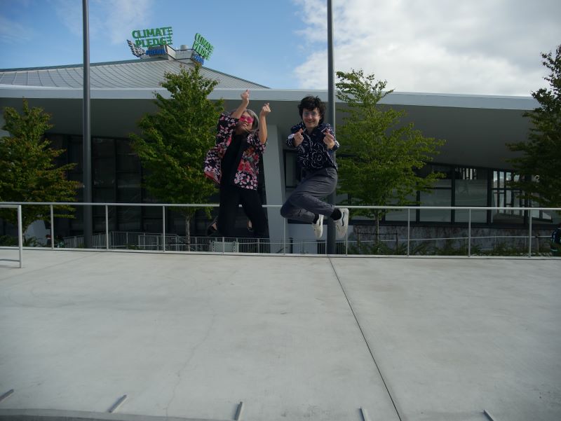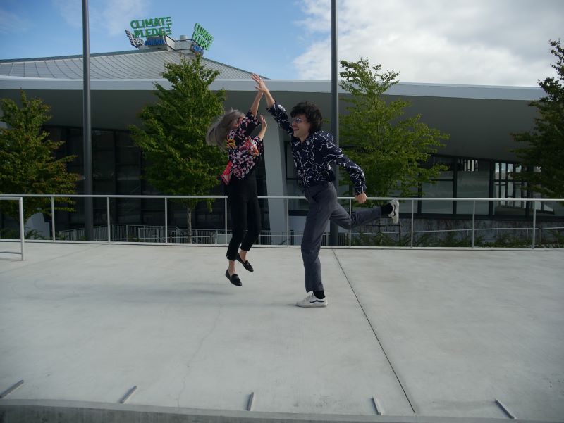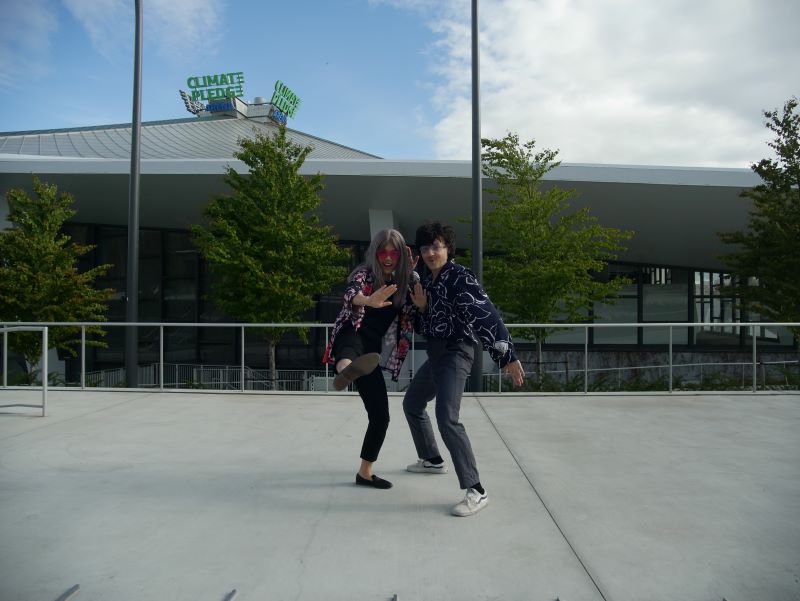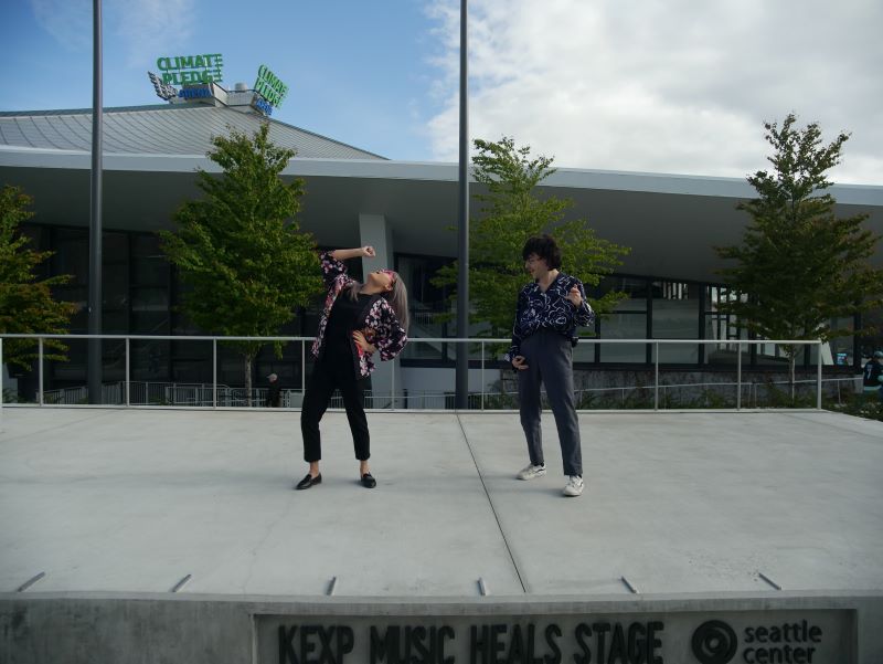 In the fading moments of office hours, Anne Tong and Bryce Barsten — the married duo who write and perform songs as Chinese American Bear — meet me in the courtyard of KEXP, helmets in hand. It’s the first warm day of the year (a little late to the party, given this day reveals itself in late April) and in spite of temperatures being somewhere in the 70s, folks wearing hockey jerseys have descended upon Seattle Center in support of the Kraken’s home game in the NHL Playoffs, making themselves eligible for the tournament for the Stanley Cup in only their second season.